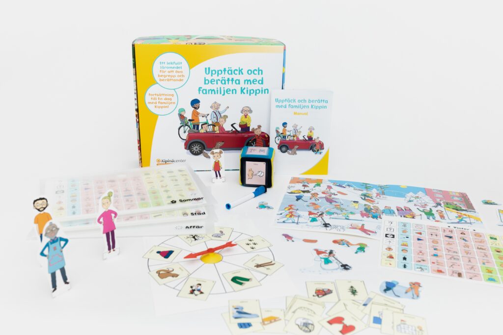 Materialet Upptäck och berätta med familjen Kippin innehåller nya lekar med tillhörande spel- och lektillbehör. Materialet går lätt att kombinera med lekarna, spelen och orden i En dag med familjen Kippin –materialet samt med Familjen Kippin tilläggsmaterialet, varpå helheten kan anpassas för barn i olika skeden av inlärningsprocessen.